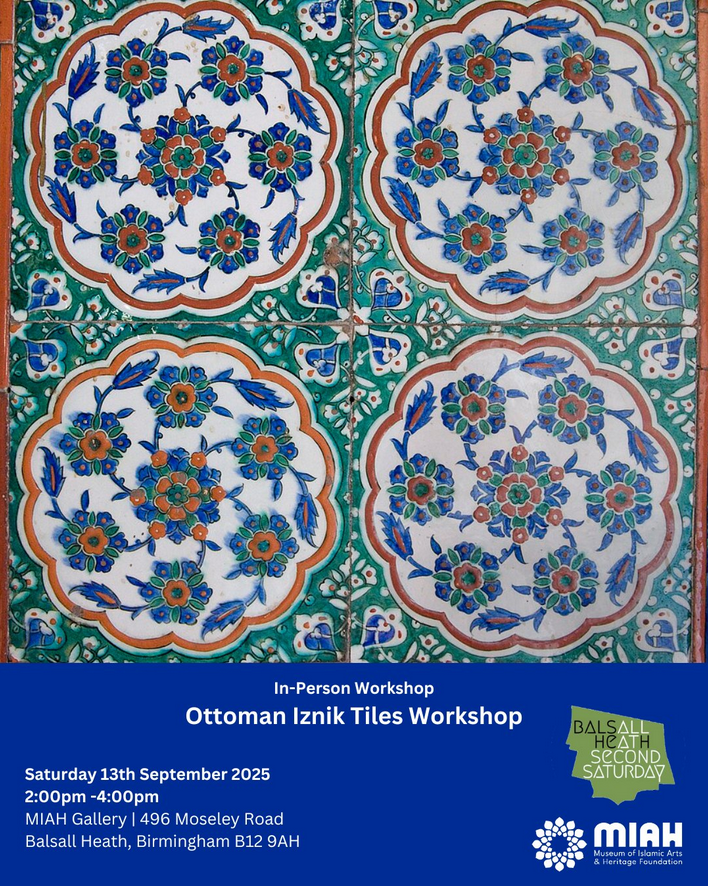 📍 Place: MIAH Islamic Arts & Heritage Gallery | 496 Moseley Road | Balsall Heath, Birmingham | B12 9AH
